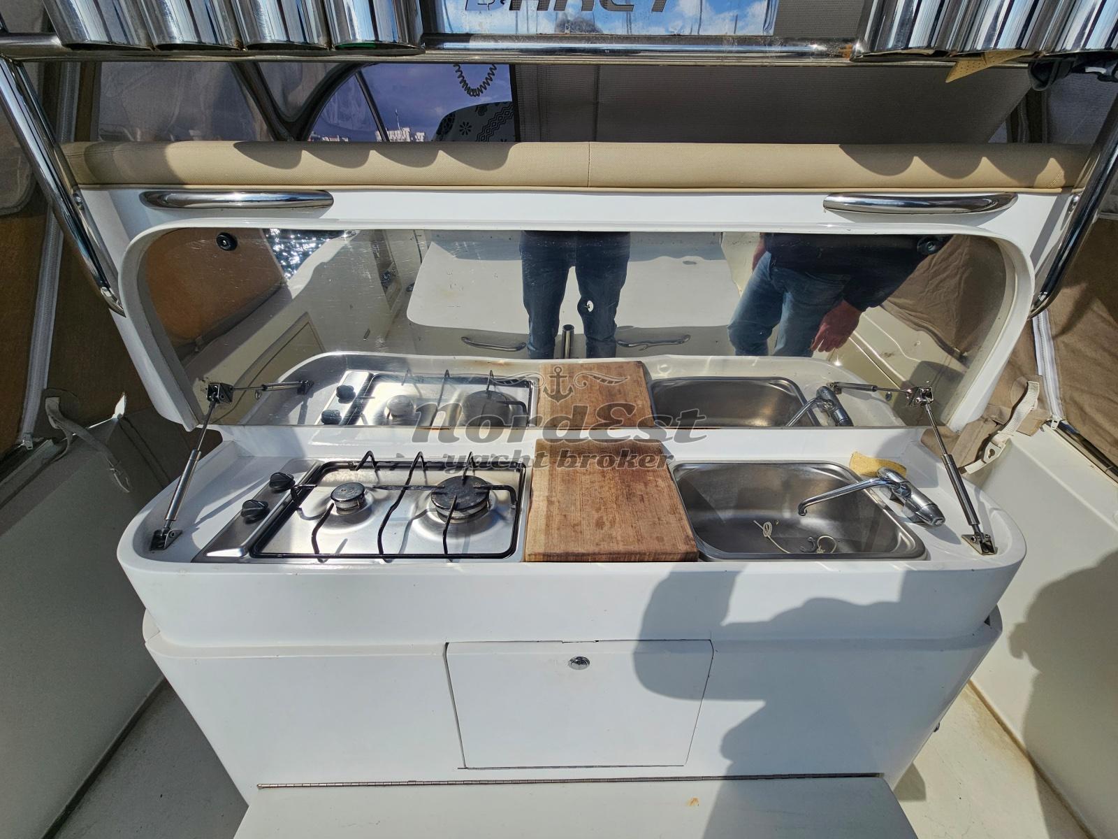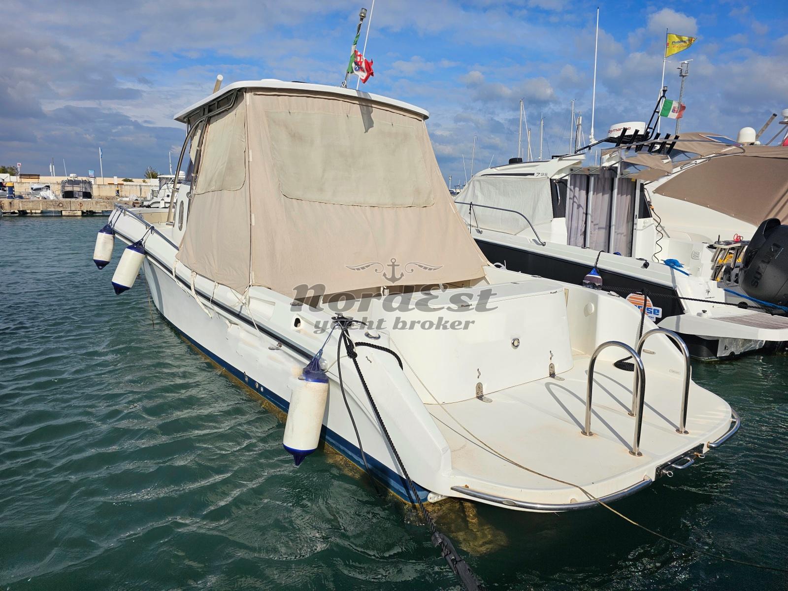 Nato come tender per grandi navi da diporto, questo fisherman ha grandi doti marine, carena molto morbida e veloce. Ben acessoriata. Il Cantiere viareggino ha prodotto questa unità nel 2002. T-Top, bellissima dotazione di accessori in acciaio. Prezzo molto interessate. Motorizzazione Yanmar 315, molto affidabile.