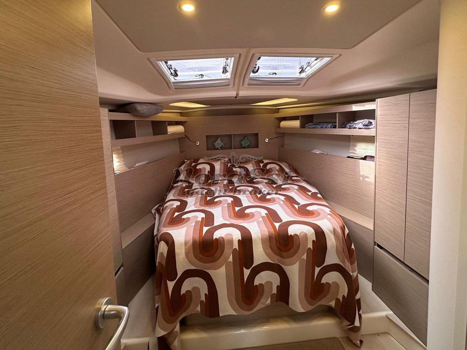 cabina armatoriale a prua e due cabine ospiti, doppio servizio